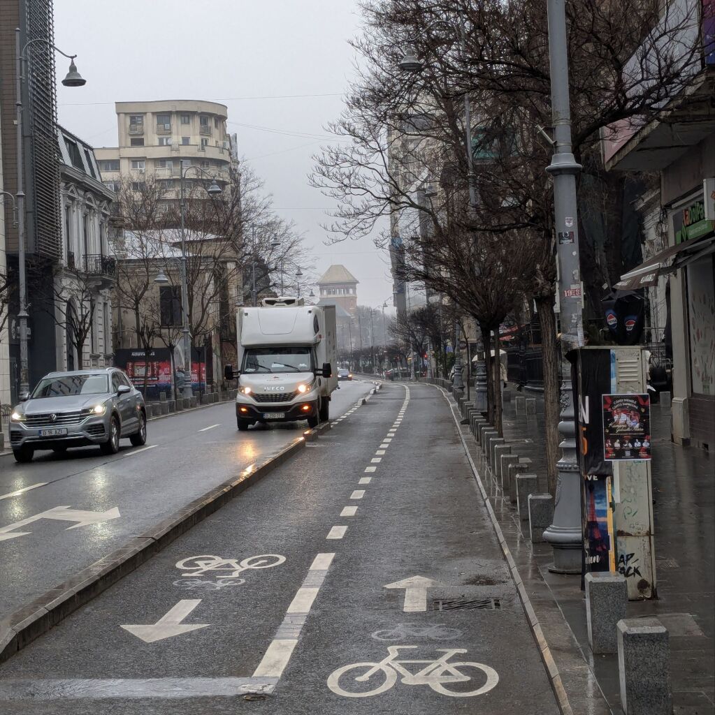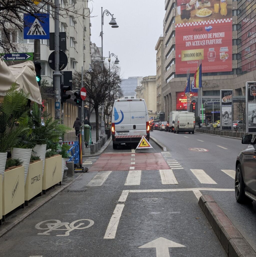 Dubă Apa Nova care blocheaza ambele sensuri de pe pista de biciclete